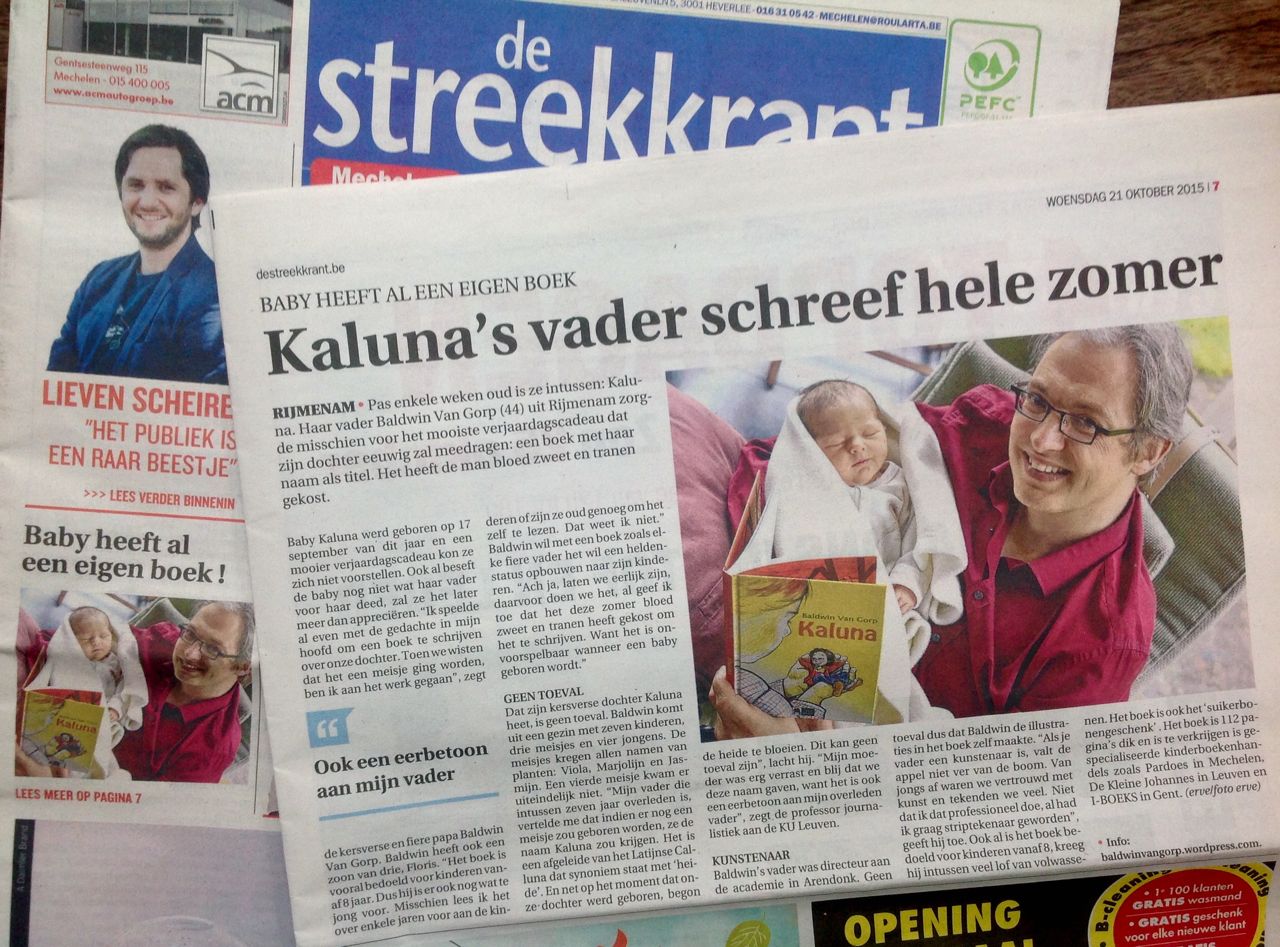 - In de kerstweek verscheen het verhaal over het boek in Rondom Leuven, opnieuw met de foto die mijn zus Jasmijn twee dagen na de geboorte maakte.